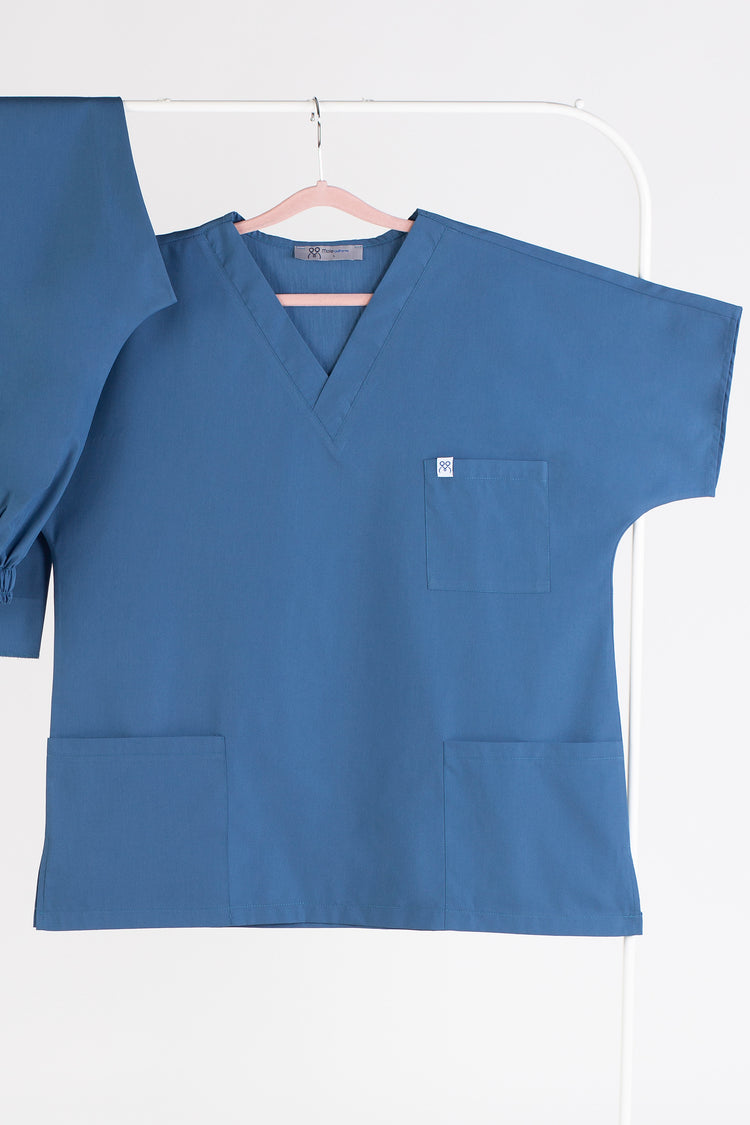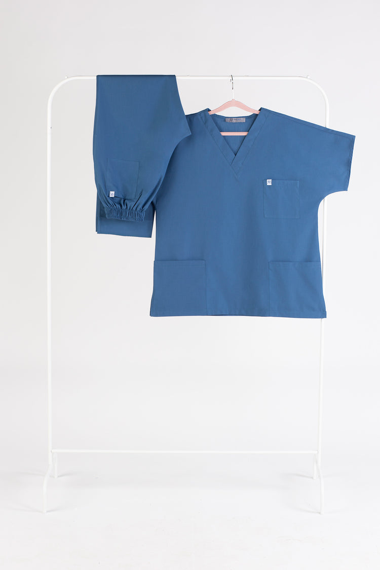 Tertius Theca Outlet - Azur mavisi v yakalı erkek üniforma takımı