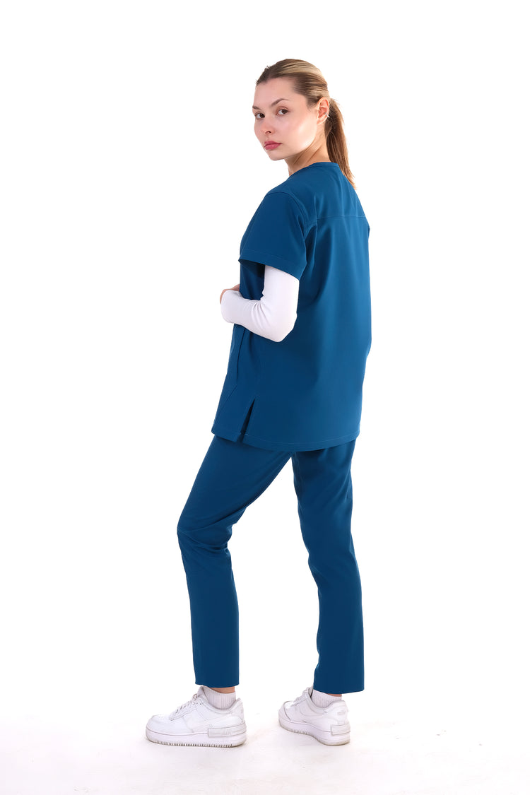 Primus Macropus - Indigo mavi Kadın Kanguru Cepli Kadın Tek Üst Üniforma