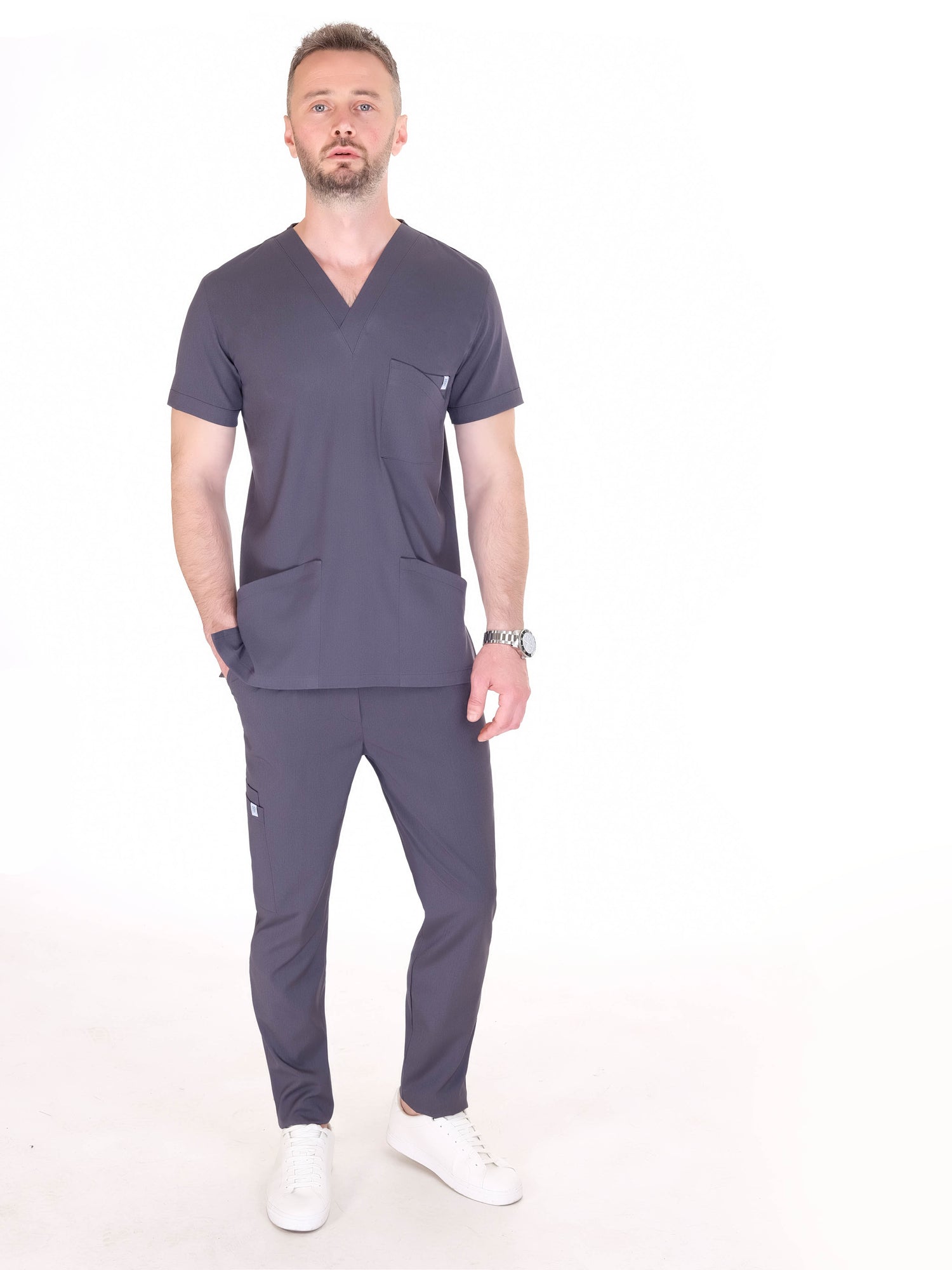 Primus Theca - Koyu gri v yakalı Erkek Tek Üst Üniforma