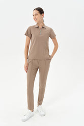 Primus Aura Bej Gömlek Yakalı Kadın Medikal Üniforma Takımı