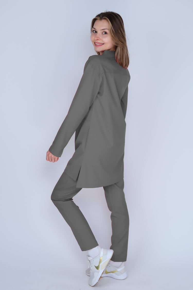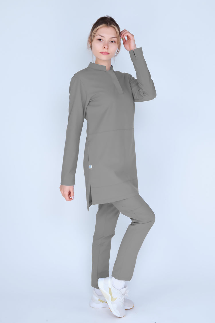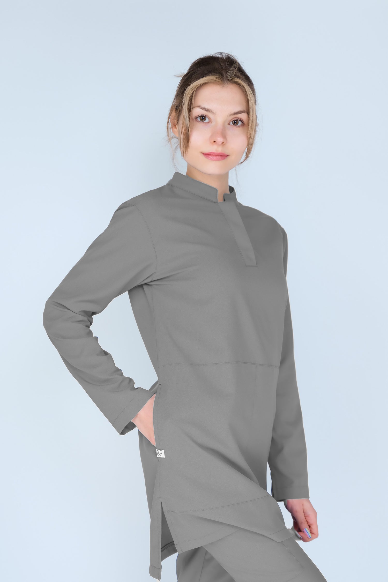 Primus Macropus Outlet - Antrasit Tesettür Hakim Yaka Kanguru Cepli Kadın Tek Üst Üniforma
