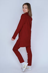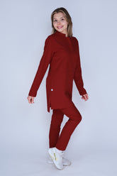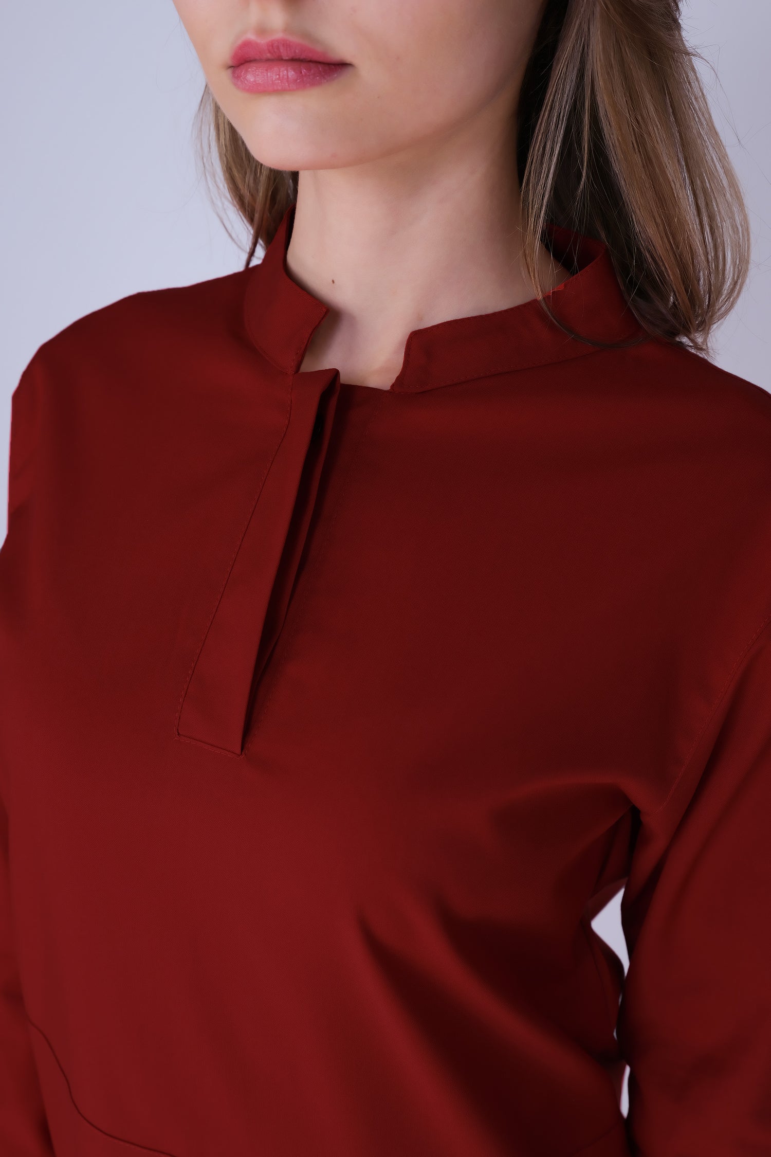 Primus Macropus Outlet - Bordo Tesettür Hakim Yaka Kanguru Cepli Kadın Tek Üst Üniforma