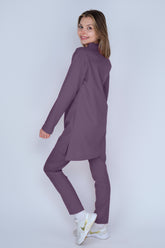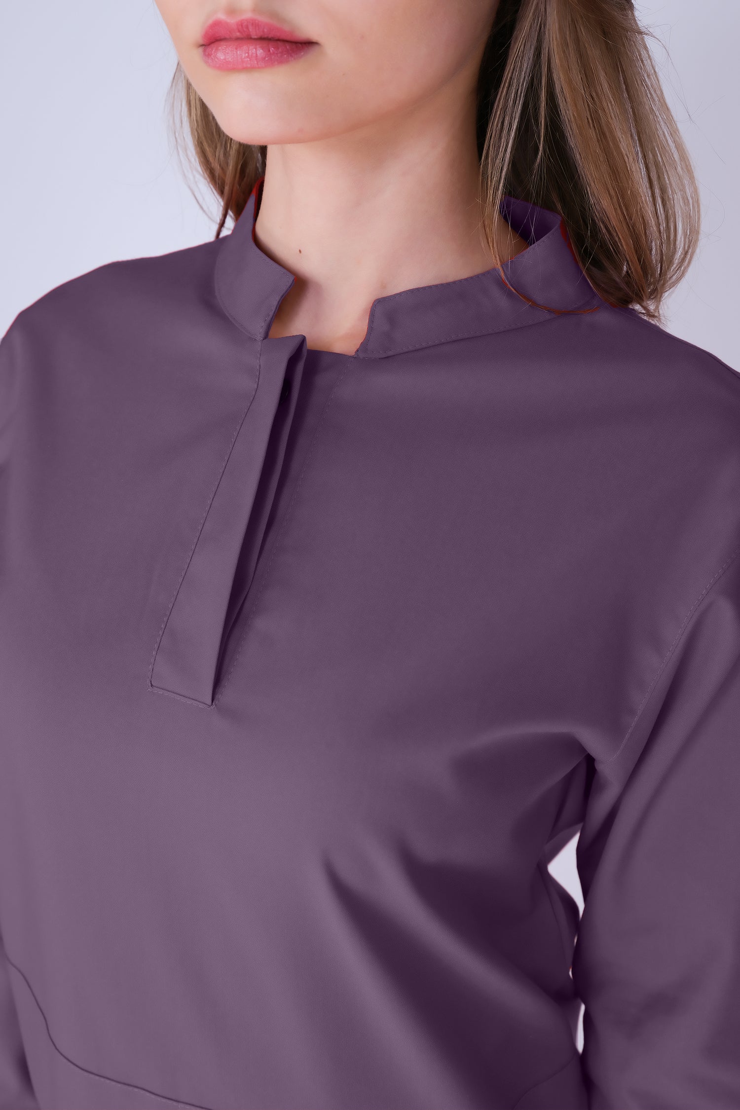 Primus Macropus Outlet - Eflatun Tesettür Hakim Yaka Kanguru Cepli Kadın Tek Üst Üniforma