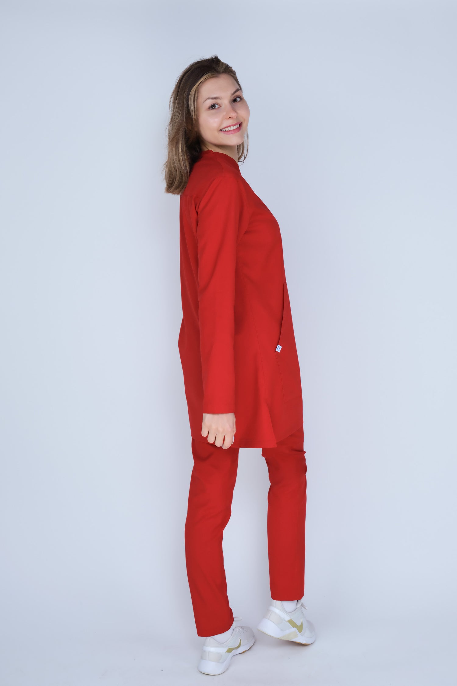 Primus Macropus Outlet - Koral Tesettür V Yaka Kanguru Cepli Kadın Tek Üst Üniforma
