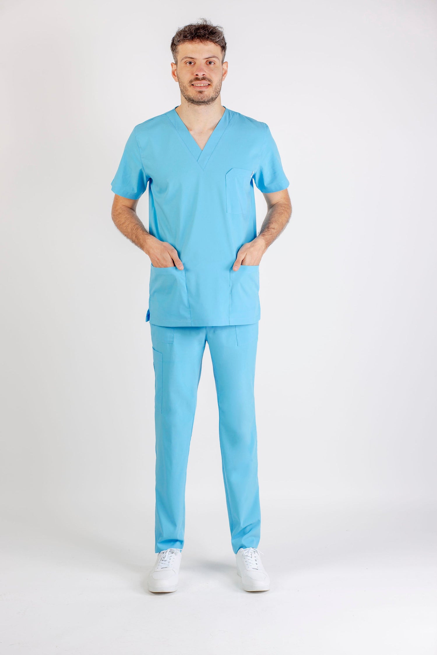 Secundus Theca - Buz mavisi V yakalı erkek tek üst üniforma