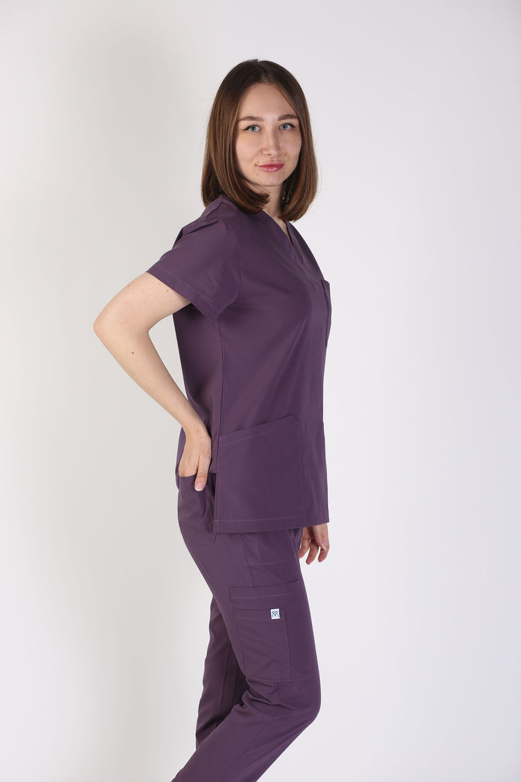 Secundus Theca - Eflatun V yakalı kadın tek üst üniforma