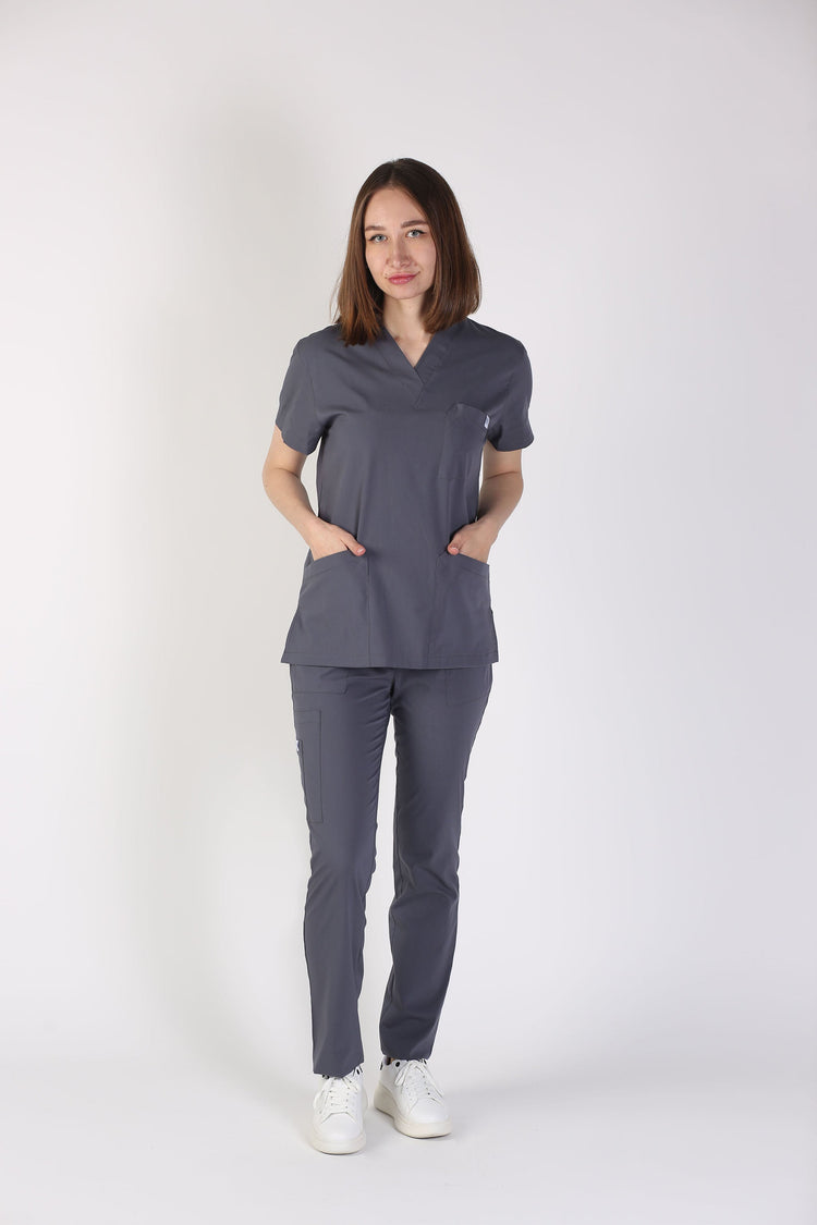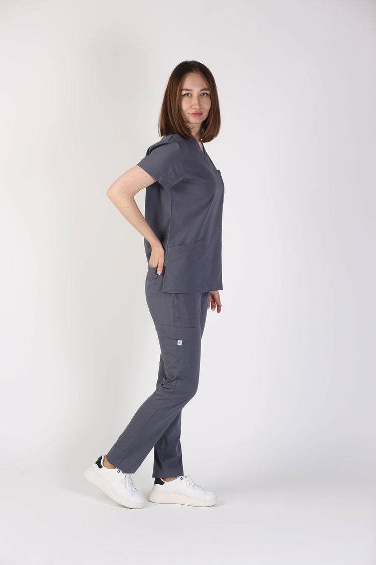 Secundus Theca - Gri V yakalı kadın tek üst üniforma