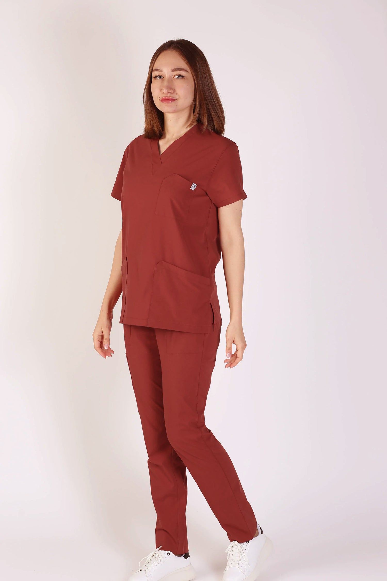 Secundus Theca - Kiremit V yakalı kadın tek üst üniforma