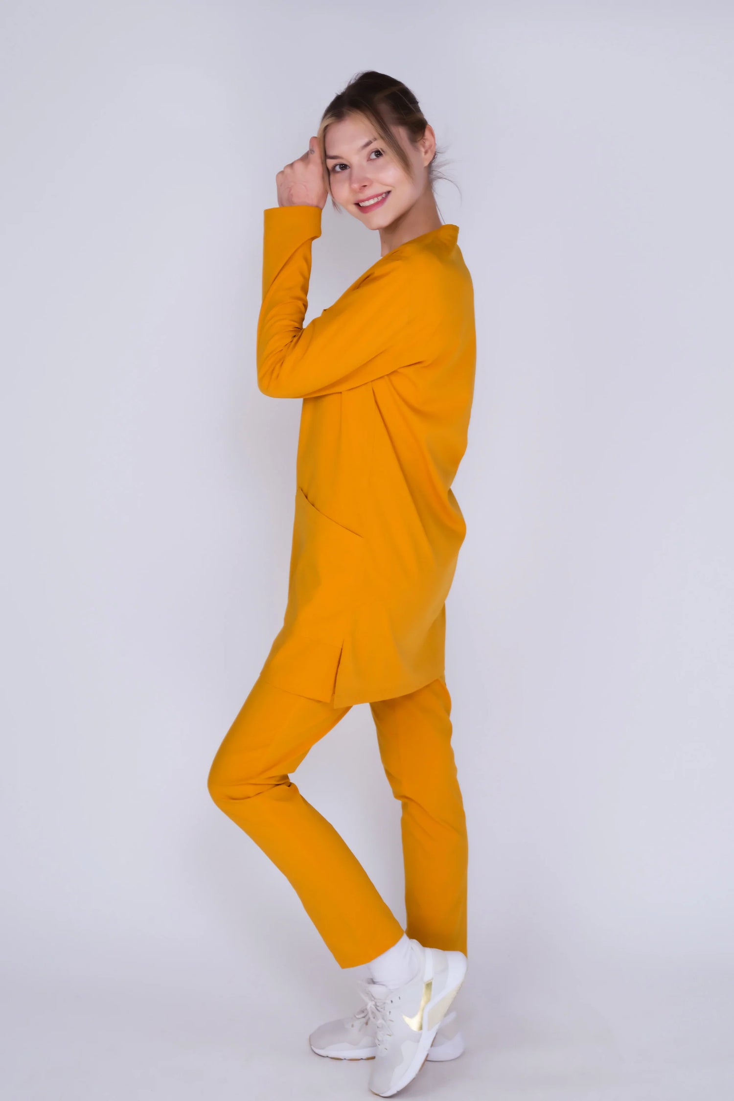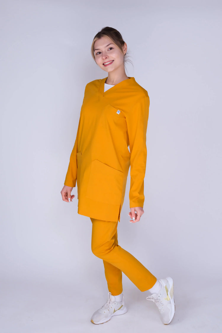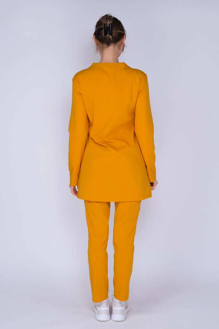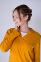 Secundus Theca Outlet - Sarı Tesettür V Yaka Kadın Tek Üst Üniforma