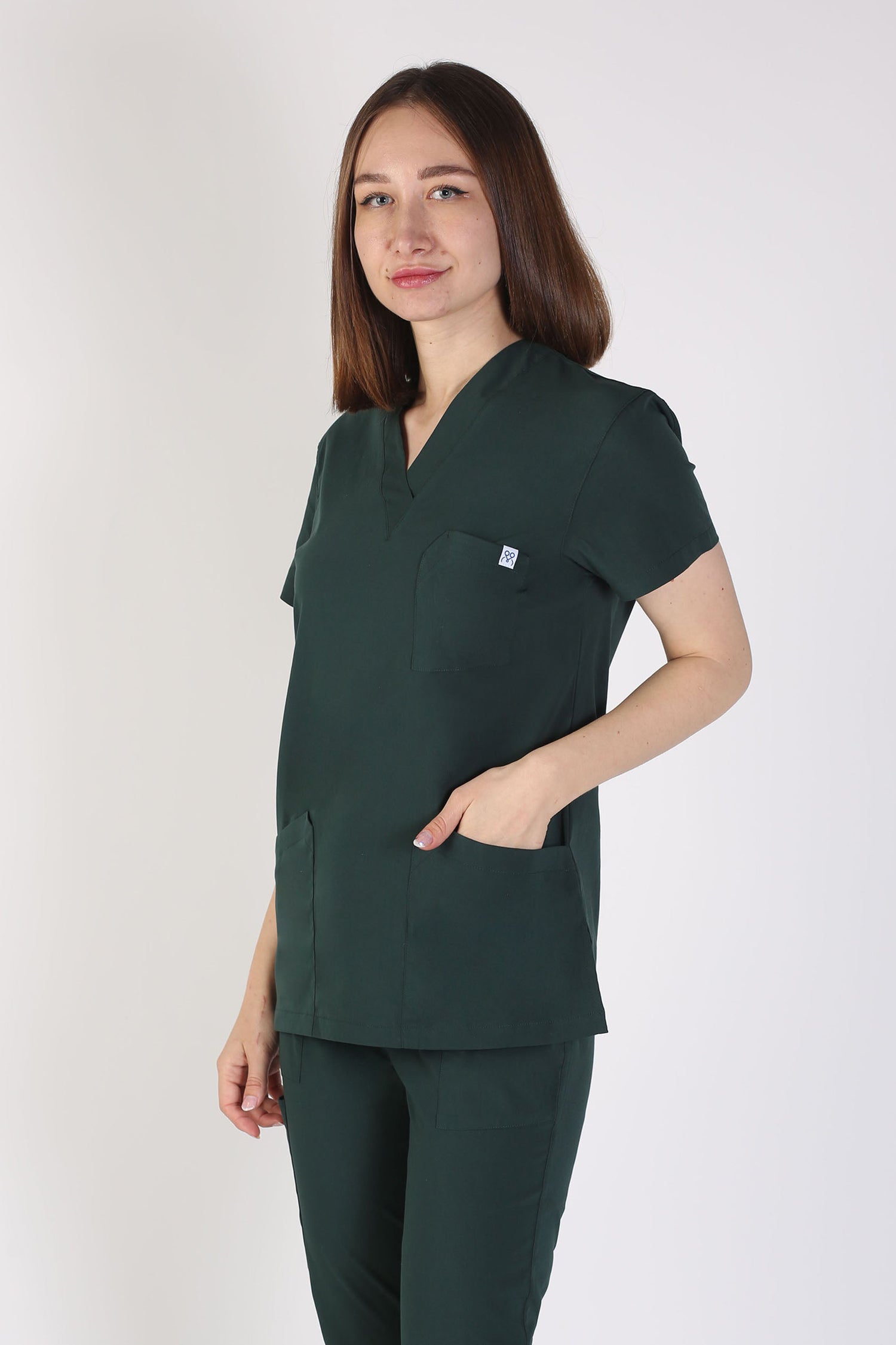 Secundus Theca - Yeşil V yakalı kadın tek üst üniforma