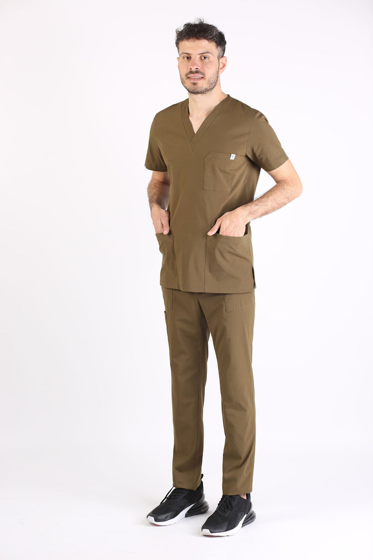 Secundus Theca - Haki V yakalı erkek tek üst üniforma