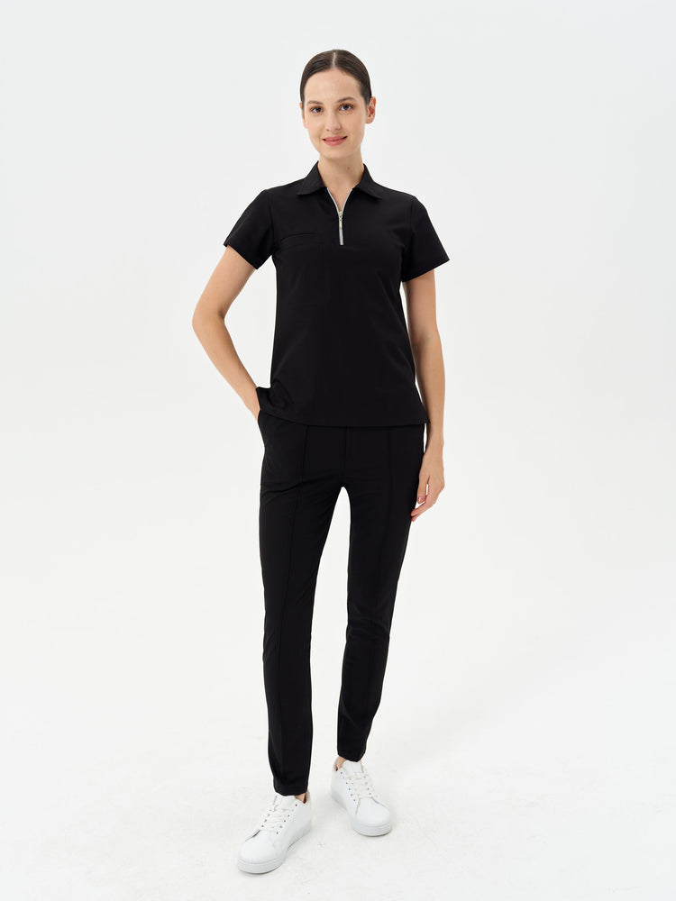 Primus Aura siyah gömlek yakalı kadın scrubs takımı - premium medikal üniforma Moleuniform