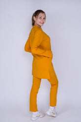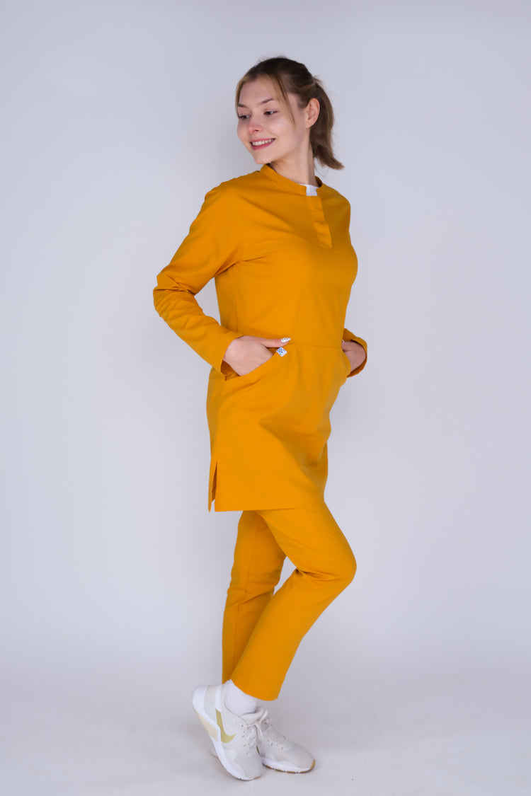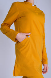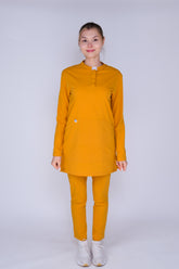 Secundus Macropus Outlet - Sarı Tesettür Hakim Yaka Kanguru Cepli Kadın Tek Üst Üniforma