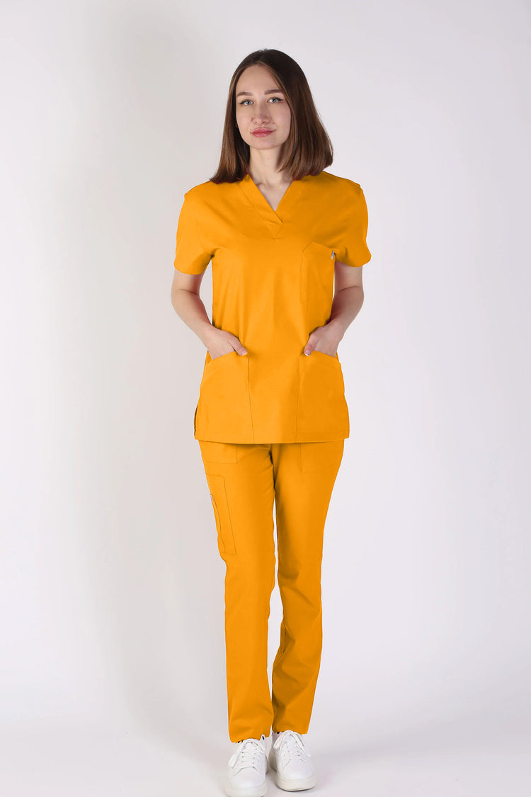 Secundus Theca - Sarı V yakalı kadın tek üst üniforma